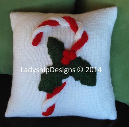 The classic candy cane decorated with a sprig of holly or ribbon makes a great theme for a holiday pillow.