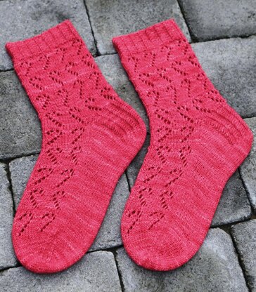 These socks would be ideal for intermediate sock knitters who would like to try adding a festive themed lace pattern to their socks.