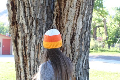 This simple colorwork hat is just the perfect project to gift loved ones, available in 7 sizes. A great beginner hat for anyone wanting to take a dive into simple colorwork techniques, done with a nice worsted yarn that makes working them up quick and simple. The layered Candy Corn hat with three basic color changes is perfect for anyone looking to try out a simple hat design.