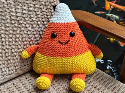 FEATURES: • Iconic candy corn colors - white, orange, and yellow • Adorable facial features with safety eyes and embroidered smile