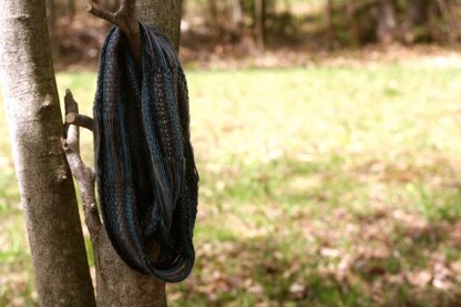 Light and airy, this dropped stitch infinity scarf is perfect for cool spring or fall evenings. When knit with a self striping yarn the stripes create a gentle wave effect through the scarf, just like the ripples on a lake.