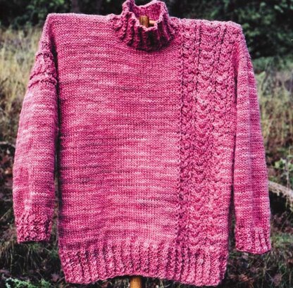 Pattern is also written for heavy worsted weight yarn. The gauge is 16 sts and 20 rows over 4" in stockinette st. The recommended needle is size 10, and the yardage range is 975 to 1430 yards.