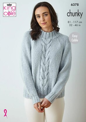Cape Top and Oversized Cable Sweater in King Cole Simply Denim Chunky - 6378 - Leaflet is a Intermediate Knitting pattern by King Cole, available as a Leaflet and includes instructions in English. Super fun to make, this pattern could be your next masterpiece!