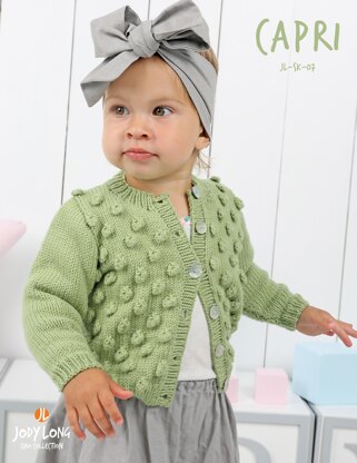 Sweet little bobble cardigan sized for 0-11 years using DK weight yarn.