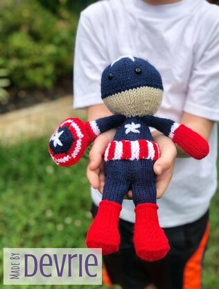 Captain America was brought up with very gentleman like qualities. He is respectful and brave. This adorable Captain America doll is a perfect toy for anyone that can enjoy this character. He is about 10 1/2 inches tall when she is done and only requires a small amount of worsted weight yarn. The pattern is written in the round and has wonderful photo tutorials. It is written line by line in U.S. Standard terms. Designed with as little sewing as possible.