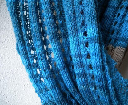 This scarf will keep you busy for a while. It is an easy to knit scarf worked in fingering weight sock yarn, there are no special difficulties hidden in the pattern. Something that you can knit while watching TV. You can of course use any other yarn as well.