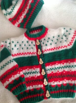This lovely little set is great for dressing up for Christmas, and would look just as good in different colours for any time of the year. Great for a baby girl or boy. Worked with no more than two colours in one row it is a lovely pattern for starting to learn colour work. I have actually written the colours in the pattern to make it easy to read.