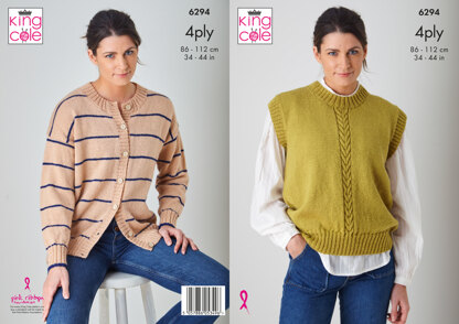 Cardigan and Slipover knitted in King Cole Merino Blend 4Ply - P6294 - Leaflet is a Intermediate Knitting pattern by King Cole, available as a Leaflet and includes instructions in English. Super fun to make, this pattern could be your next masterpiece!