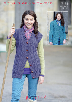 Cardigan and Waistcoat in Hayfield Bonus Aran Tweed with Wool - 7135 - Downloadable PDF is a Knitting pattern by Hayfield, available as a Downloadable PDF and includes instructions in English. Super fun to make, this pattern could be your next masterpiece!