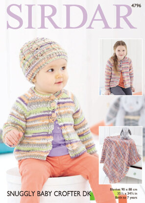 Cardigan, Hat and Blanket in Sirdar Snuggly Baby Crofter DK - 4796 - Downloadable PDF is a Intermediate Knitting pattern by Sirdar Snuggly, available as a Downloadable PDF and includes instructions in English. Super fun to make, this pattern could be your next masterpiece!