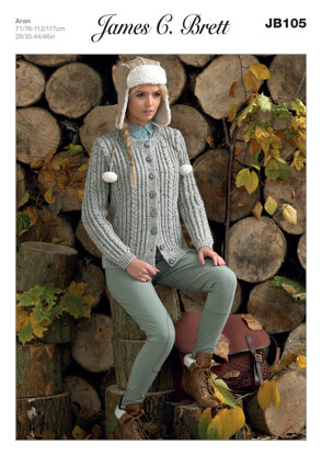 Cardigan in James C. Brett Rustic with Wool Aran - JB105