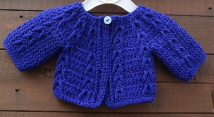 It is also possible to work the first size in a smaller hook (3.50mm) for a small newborn - 35cm (14") chest fitting. The gauge to achieve this is 16sts and 9 rows to 10cm (4") - measured over trebles.