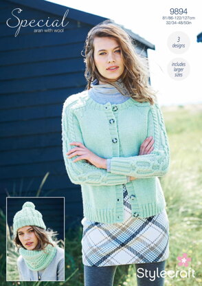 Cardigan, Snood and Hat in Stylecraft Special Aran with Wool - 9894 - Downloadable PDF