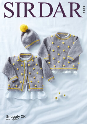 Cardigan, Sweater & Hat in Sirdar Snuggly DK - 5289 - Leaflet is a Intermediate Knitting pattern by Sirdar Snuggly, available as a Leaflet and includes instructions in English. Super fun to make, this pattern could be your next masterpiece!