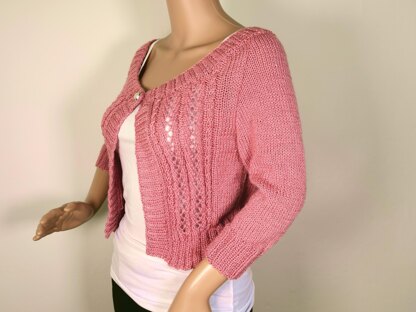 - This cardigan has a beautiful lace and mini cable design in right and left front part (no cable needle required for mini cable) - This cardigan has a negative ease (between 4 and 17 cm depending on size) - The cardigan consists of a back piece, a left and a right front piece and 2 sleeves. - Along the front pieces you have to pick up stitches for the border. - For the collar at the neck you need to pick up stitches, knit a border and make a buttonhole