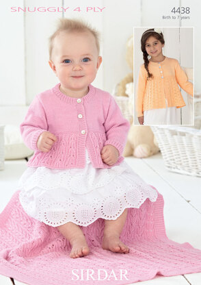 Cardigans and Blanket in Sirdar Snuggly 4 Ply 50g - 4438 - Downloadable PDF is a Knitting pattern by Sirdar, available as a Downloadable PDF and includes instructions in English. Super fun to make, this pattern could be your next masterpiece!