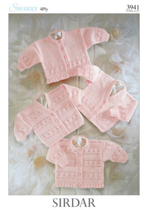 Cardigans in Sirdar Snuggly 4 Ply 50g - 3941 - Downloadable PDF is a Knitting pattern by Sirdar, available as a Downloadable PDF and includes instructions in English. Super fun to make, this pattern could be your next masterpiece!