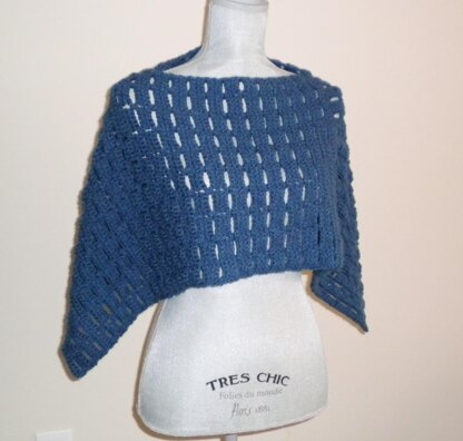 Take the chill off with this little cover-up capelet. Pop it on over so many different outfits. It can be worn as a capelet or a short poncho. One size fits most. Made with 2 attractive crocheted panels that are simple to assemble. Yarn Weight: Medium Worsted. Skill Level: Easy. Crochet Hook: US H