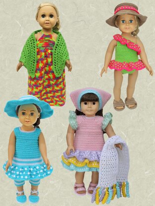 Caribbean Cruise for 18 inch Dolls. Your 18 inch doll such as American Girl, Springfield, Gotz or similarly sized dolls will be outfitted for shipboard adventure in these four crocheted outfits. Crochet instructions include: