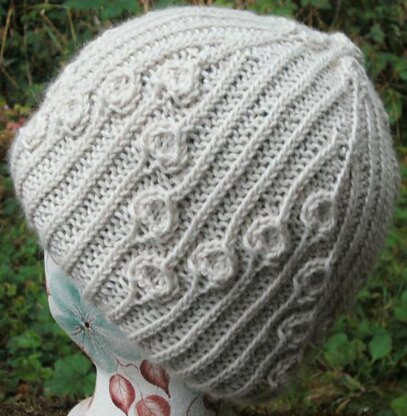 A series of “bells” on twist-stitch bellropes run up and down the sides of this cap in an attractive arrangement somewhat reminiscent of Austrian ski sweaters. An additional set of bells adorns the top of the cap.
