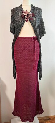 ABOUT THE PATTERN The skirt is crocheted top down in dc stitch, and it has a double ruffle at the bottom. The waist is just a little narrower than the hip area so that the skirt can be put on over the widest part of the body since it has no zipper or other opening. To fit the waist measurement the skirt has a cord inserted inside the waist band.