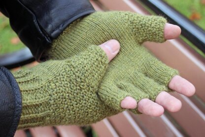 These retro styled men’s gloves – fingerless or full fingered – use a moss stitch variation to give a woven textured back with a smooth palm. They are perfect to keeping hands toasty in the garden, car or workshop. The pattern is written for fingerless gloves but instructions for creating full fingered gloves is included.