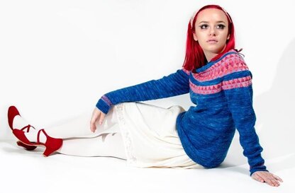 This women's pullover is knit from the bottom hem up to the armholes in the round. The body is placed on hold and the sleeves are then worked from the cuffs up to the armholes in the round. The sleeves and body are then joined to work in the round, with a colorwork yoke. Simple 1x1 ribbing at the neckline and hems completes this casual sweater. Sizes given are for the actual finished garment - if you prefer a more casual look as it is styled in the photos, choose a finished size 2-5" larger than your actual bust size. If you prefer a closer fitting garment, choose a size that is as close to your actual bust size as possible.