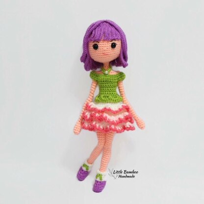Materials: • 4 Ply fingering Acrylic / Milk Cotton Yarn - Light peach - White - Purple - Green - Pink - Watermelon red • Fiberfill or cotton • Crochet hook size 2 mm • Wire • Black eye 9 mm • Hook and eye ( 3 sets ) • Button 5 mm ( 1 ) • White bead 5 mm ( 1 )
