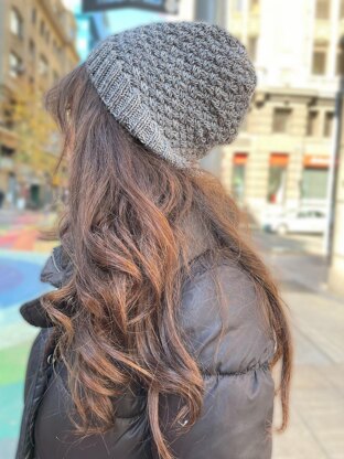 The Carnaúba Hat is a fun and interesting hat pattern, worked in a basket-weave cable stitch pattern in the round from brim to crown.