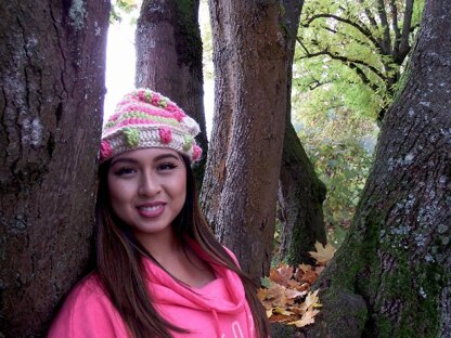 After deciding to be “Harley Quinn” for Halloween this year, I put my new Bernat Blanket yarn to work and after inventing the wristers, I came up with a hat, legwarmers, slippers, and more! Please enjoy!
