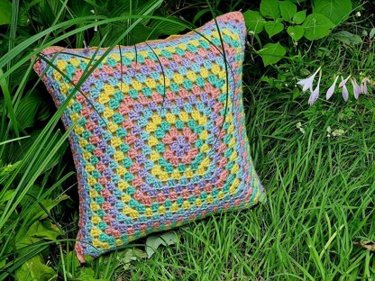 This lovely crochet cushion pattern is based on a traditional granny square design with one large granny square motif front piece; only the front panel is crocheted and then sewn on a good quality fabric cushion cover, fastened with a zipper which makes it easier to remove and washed.