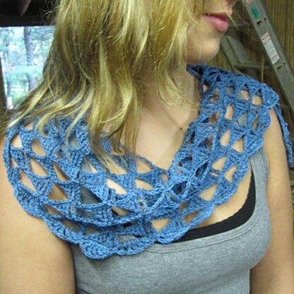 Delicate and lacy, this side-to-side scarf is wonderfully multipurpose! With wearable options as a neckerchief, small shoulder shawl, hair kerchief or even a swimsuit coverup, Caroline is perfect for gift giving -let the recipient style it in their own unique way! The chic, inimalistic diamond motif is not only easy to work but right on trend, and due to the slight bias of the stitch pattern, lends a slightly asymmetrical look to the finished piece. Caroline will be as fun to make as to wear.