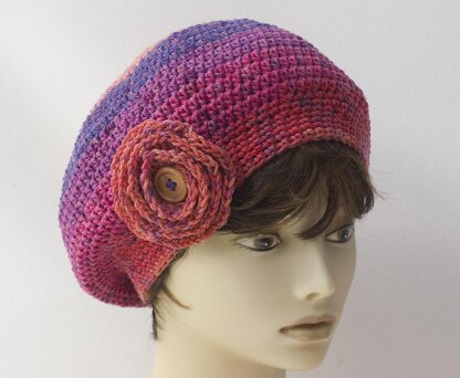 American crochet terms. This is an easy pattern appropriate for a beginner who wants to practice crocheting in the round. It is made with one skein of Caron Cupcake yarn which is a cute color changing yarn. The yarn comes with a pom pom that you can sew on top if you'd like. Pattern includes directions for the removable flowers.