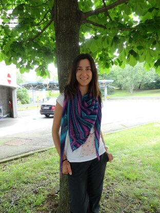 This shawl has a very enveloping shape, it is practical, easy to use in thousand occasions. It is the pattern version of CAROUSEL KAL published previously.