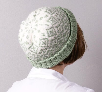 Carry On is knit from the brim to the crown using two colors of sport weight yarn. The pattern is fully charted in 4 sizes. Carry On fingerless mitts can also be knit to complete the set.
