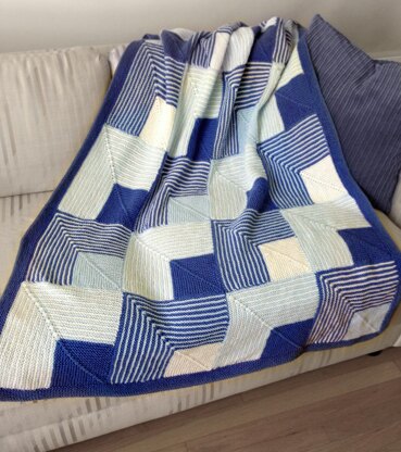 This modern-looking, easy, mitered square blanket can be worked as separate blocks and sewn, or worked as one-piece. Borders are added using pick up and knit.
