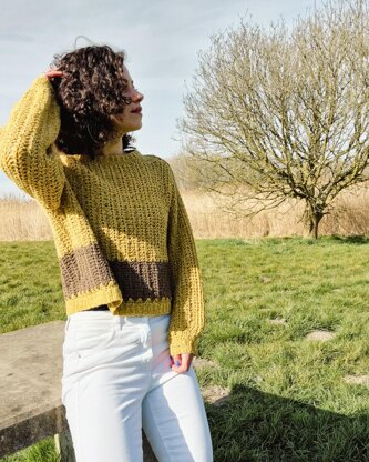 The Caryopsis Sweater is a top-down sweater using a technique more used in knitting. I designed this sweater using 2 different yarn weights, with long and short sleeves.
