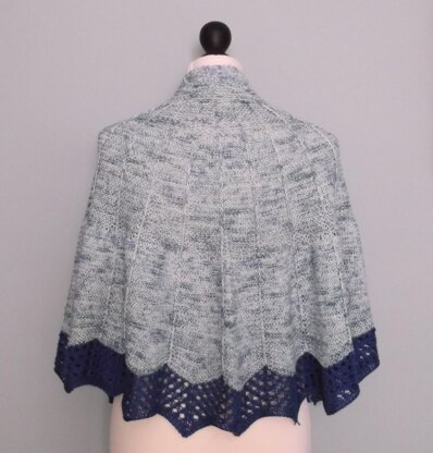 Garter stripes make up the main body of this shawl with a slipped stitch pattern that runs from top to bottom. A slightly angled eyelet pattern border finishes the garment.
