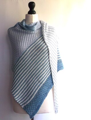 Worked sideways with a simple increase down one side, this shawl uses garter stitch stripes and a pretty lace pattern to great effect. Choose three shades and cast on