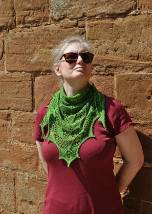 Cascadia is knitted from the bottom up to take advantage of the way the lace pattern works, producing a scalloped edge as well as an overall design. On completing the knitting, the 9 remaining stitches are grafted together.