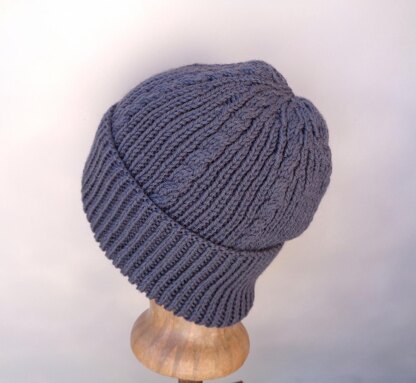 A basic, sophisticate beanie in 1x1 rib with a hint of cable detail. I needed a quick gift for a friend... simple but not boring, so a bit of cabling did the trick!