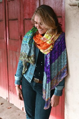 In this sample, each 20-gram mini skein section is about 4” (10cm) of rows. This sample includes 16 minis, but 12 20g minis is an ample sized result as well. Adjust the number of mini skeins for your ideal length. Knit Cassiopeia with eight skeins for Hanukkah, 24 for the Advent season, seven for a one-week shawl challenge - or just use this pattern with leftover scraps of various amounts for a fun, vibrant wrap. Or even use full skeins that have been waiting for just the right project. Your creativity is your guide for the color combinations – Do a fade or rainbow or monochromatic subtle shift.