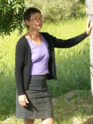 A slightly fitted classic lady's cardigan in a casual design. The pattern is in elastic ribbed stitches - purl and knit. The rib bottom body has a split at both sides giving the model an elegant look. The long ribbed cuffs are a bit wide. The in-set sleeves with the shaped sleeve-cap give the garment a super fit. The model is worked flat from right front to left front giving no side seams. The neck band as well as the front bands are narrow with buttonholes for small buttons down along the right front. Detailed written pattern. Interesting work. This model is suitable for all ages and shapes.