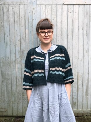 Casual Ocean is a slouchy, drop-sleeved cardigan with an interesting wavy stitch pattern. Inspired by a record my Husband and I stumbled across whilst digging around second-hand shops in North Laine, Brighton, and bought purely for the fantastic sleeve, (think beautiful marble background, with a framed image of a painted posing dog and a young boy wearing a sailors outfit holding a posy, in front of a photo of an epic lightening storm over a lake… its a lot. Further research discovered it to be a prog rock record, with some very mixed reviews according to all the Internet ‘experts’. All of that inspired a slightly psychedelic stitch pattern and some fun pops of colour.
