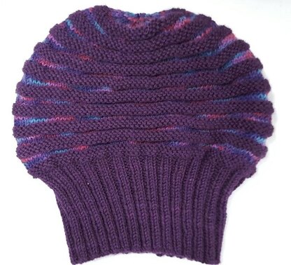 You can wear it like a loose beanie with the ribbing flat or you can make a brim by turning the ribbing up and creating a snug fitted hat.