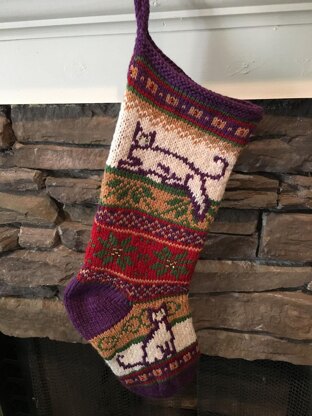 Everyone knows that no matter how hard you try to decorate and have things “just so,” that cats will come along and change the decorations to suit them. This stocking is no exception. A traditional Christmas stocking with cats being cats.