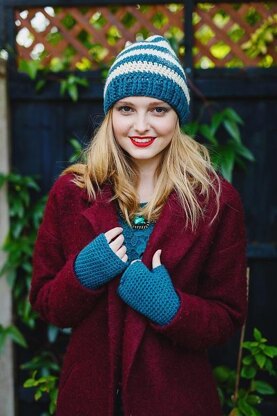 This pattern for Beanie hat and wrist warmers first appeared in Issue 84 of Inside Crochet magazine.