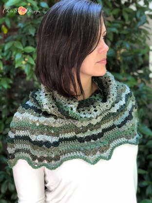 Crocheted top down this cowl is easy to increase to any desired width and length. The written pattern includes two sizes: S/M or L/XL.