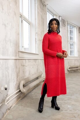 Notes: The dress is worked from the bottom up in two pieces to the end of the vents, then joined and worked in the round to the sleeve opening. The remaining is worked back and forth to the shoulders. Only the shoulders are seamed together to give the dress a bit of structure.
