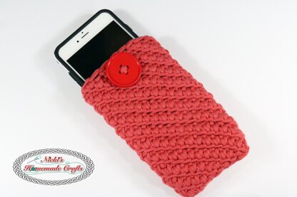 I decided to create a cell phone pouch that not only protects my phone from dirt and possible small damages such as scratches, it also have another purpose. It can be hanged up over a charging plug when connected to an outlet while charging your phone. AWESOME!